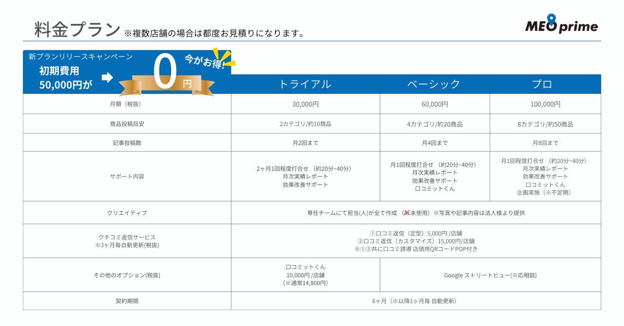 Web集客支援サービス「MEO prime」の新プランをリリースいたしました。